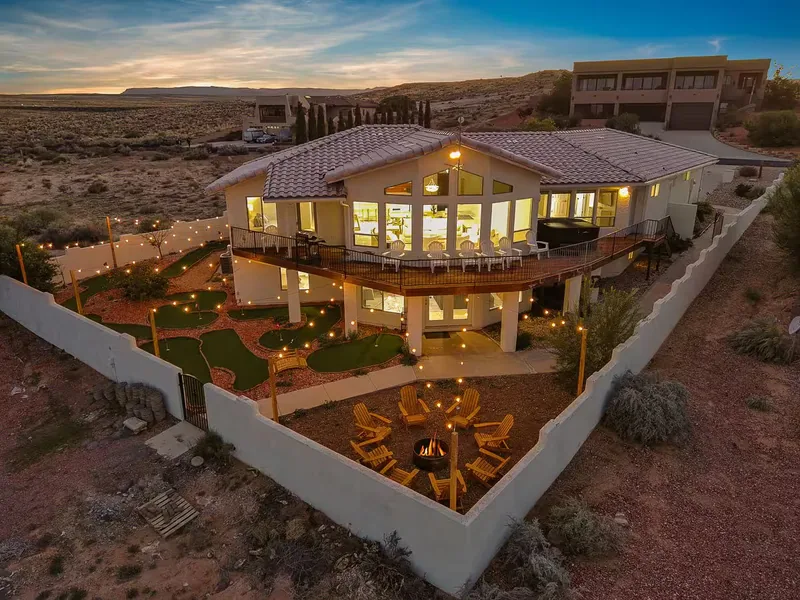 Southwest wedding weekend venues typically accommodate 20-150 guests across multiple bedrooms and casitas, with luxury properties featuring 8-15 bedrooms for overnight stays. These estates and haciendas offer expansive outdoor ceremony spaces with red rock or mountain vistas, resort-style pools and hot tubs, multiple covered patios and courtyards for dining and lounging, professional-grade kitchens for catering prep, bridal suites with desert views, and outdoor entertainment areas. Privacy is paramount, with most properties situated on multi-acre lots or gated compounds, offering complete exclusivity for your wedding weekend. Unique desert characteristics include native xeriscaping, outdoor fire pits for cool evenings, architectural details like exposed beam ceilings and adobe walls, and seamless indoor-outdoor flow perfect for the region's mild spring and fall weather.